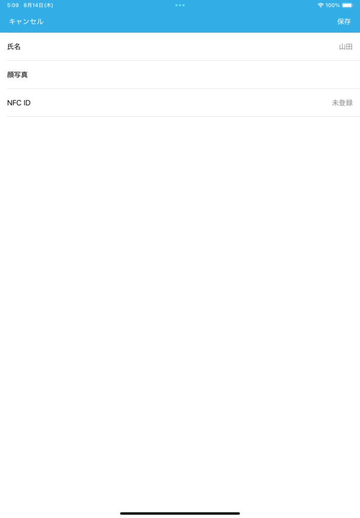 従業員 – 編集 2025年8月12日2025年8月14日 投稿者: admin名前・顔写真・NFCカードの登録の編集が行えます。「従業員タブ」で登録されている従業員をタップ「編集」をタップ「氏名」「顔写真」「NFC ID」が編集可能です。※顔認証を利用している場合で、認証が通らない場合は顔写真を再登録することで正常に認証される場合があります。顔認証用の写真は明るいところで正面から撮影をお願いいたします。※NFCカードの登録は「従業員認証方式」がNFCの場合のみ編集可能です。