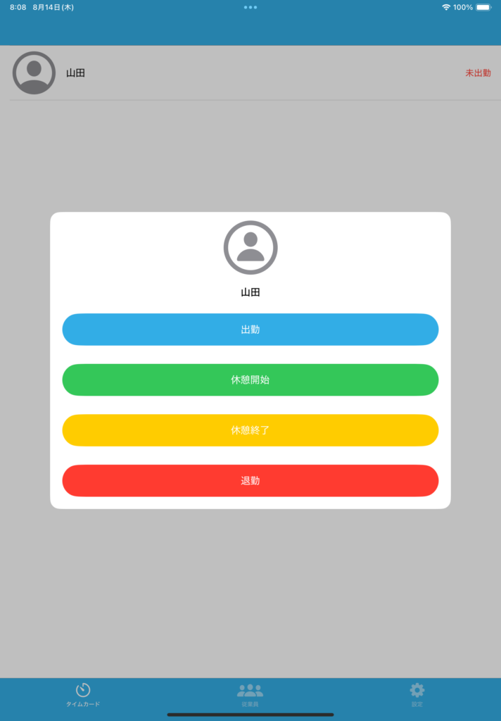 出勤・休憩開始・休憩終了・退勤のいずれかをタップ